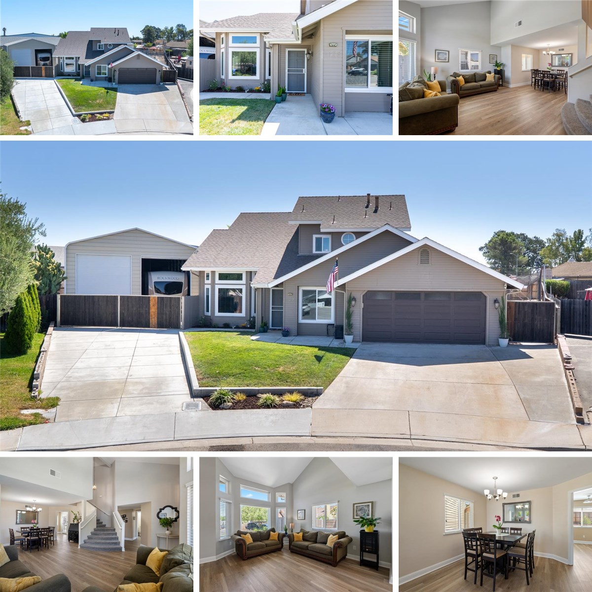 Tucked at the end of a cul-de-sac on a 1/3-acre lot, this upgraded 4-bedroom, 3-bath home offers 1,900 sq. ft. of living space near the Paso Robles Golf Course and Almond Acres Charter Academy. The interior features LVP flooring throughout, neutral paint colors, and Milgard Trinsic Series windows that bring in natural light. The living areas include a cozy family room with vaulted ceilings, plus a bedroom and ¾ bath on the lower level. The kitchen is appointed with custom concrete counters, a tile backsplash, and stainless-steel appliances. Upstairs, the spacious primary suite offers vaulted ceilings, a walk-in closet, soaking tub, updated vanity, and access to a new private deck, while two guest bedrooms and a shared bath complete the upper floor. Outside, the expansive yard offers something for everyone with a built-in firepit, batting cage, raised garden beds, and plenty of room for a pool. A 37’ x 27’ RV/boat garage with hookups and dual roll-up doors provides easy access and storage, complemented by a tool shed on slab. Energy efficiency comes from a 5.5kW owned solar system with individual panel inverters, maximizing performance and helping to keep utility costs low year-round. The seller is also offering a closing cost credit, giving buyers added flexibility. Don’t miss this opportunity to own a versatile Paso Robles property with space, upgrades, and functionality - schedule your showing today.